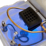 Model został wyposażony w wysokiej klasy akrylową umywalkę z funkcją koloroterapii LED, ruchomy ring w eleganckim, złotym wykończeniu, delikatną słuchawkę natryskową, a także generator pary i kopułę saunową – co pozwala stworzyć w pełni profesjonalne stanowisko do zabiegów na skórę głowy i włosy.