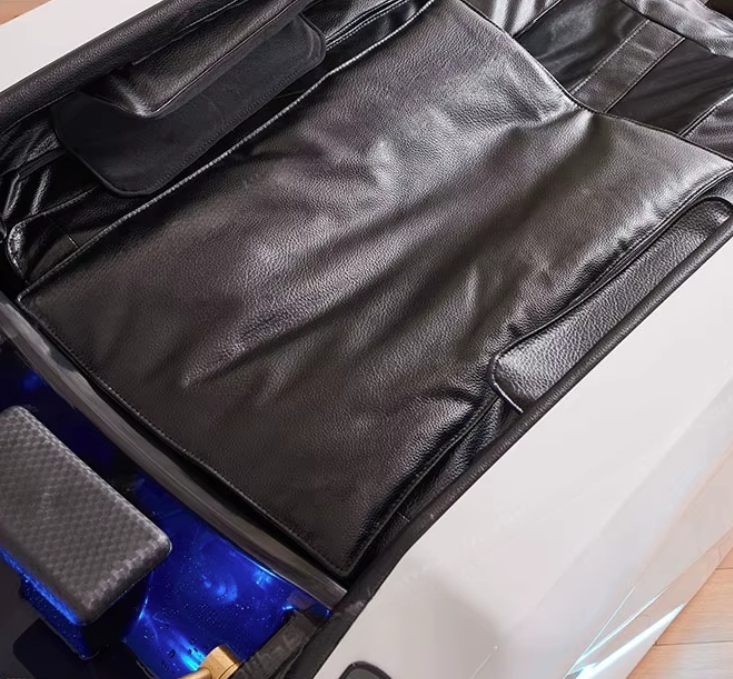 Model wyposażono w inteligentny masaż 3D, który precyzyjnie dopasowuje się do kształtu ciała, zapewniając głęboki relaks i skuteczne rozluźnienie napięć mięśniowych. Zaawansowany masaż ciśnieniowy obejmuje talię, barki, podłokietniki oraz nogi, dostarczając kompleksowego odprężenia całemu ciału.